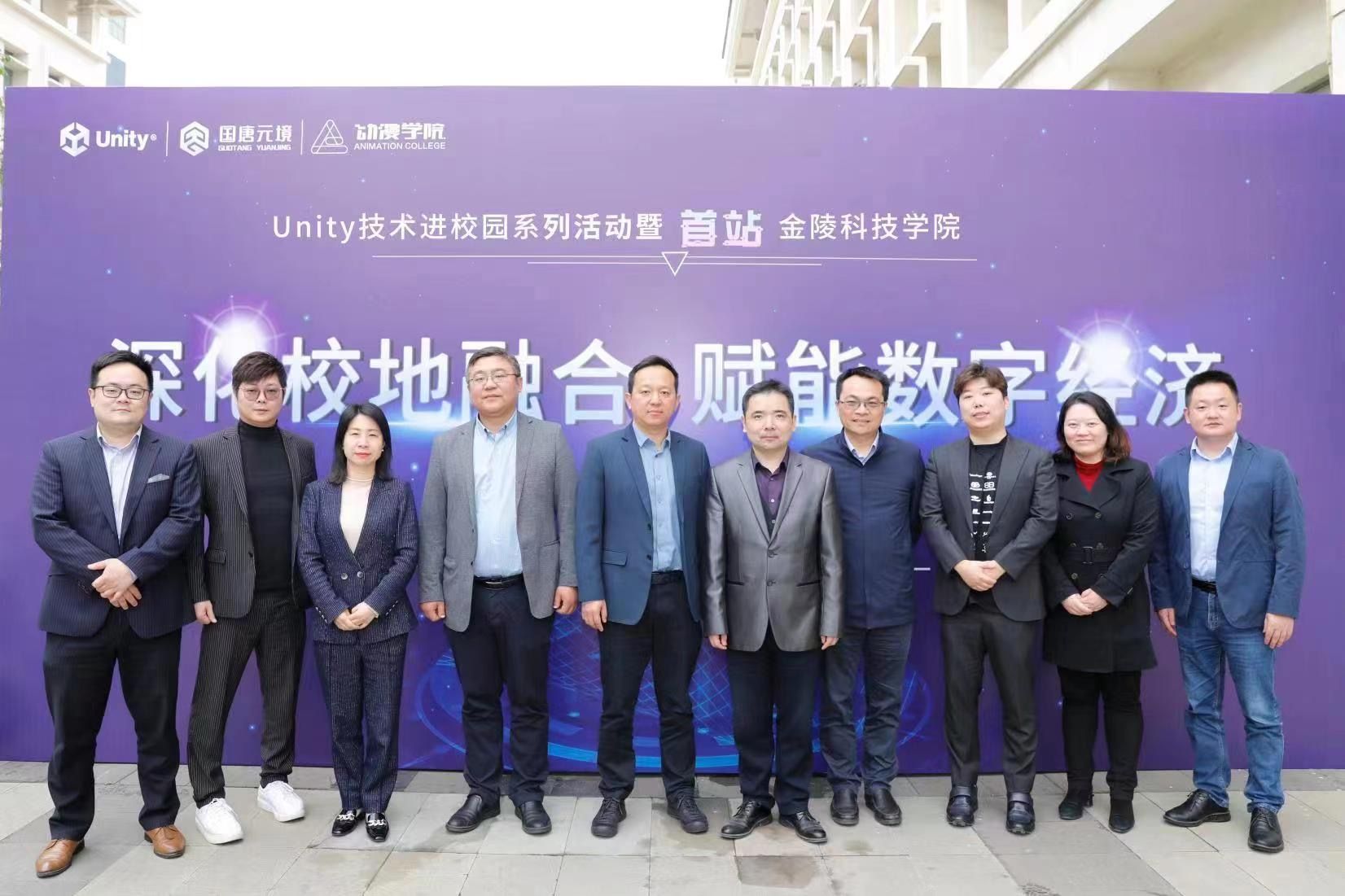 4月25日下午,动漫学院校企合作Unity授权产教融合中心(江苏)揭牌仪式在尚学楼7100举行。江宁高新区科创投公司总经理、江宁高新区数字经济产业发展部部长郭方朋,江苏新华日报大数据有限公司总经理夏霖,江宁高新区数字经济与未来产业部副部长张果,北京国兴唐元科技有限公司董事长程旭,江苏国唐云信科技有限公司总经理海永军,南京魔数团科技有限公司董事长王勇,上海喂啊网络科技有限公司董事长陈修超,江苏大西洲运营管理有限公司总经理庄礼鸿,国唐元境(江苏)科技有限公司总经理李婷,动漫学院党总支部书记赵宁,动漫学院院长王贤波出席授牌仪式。