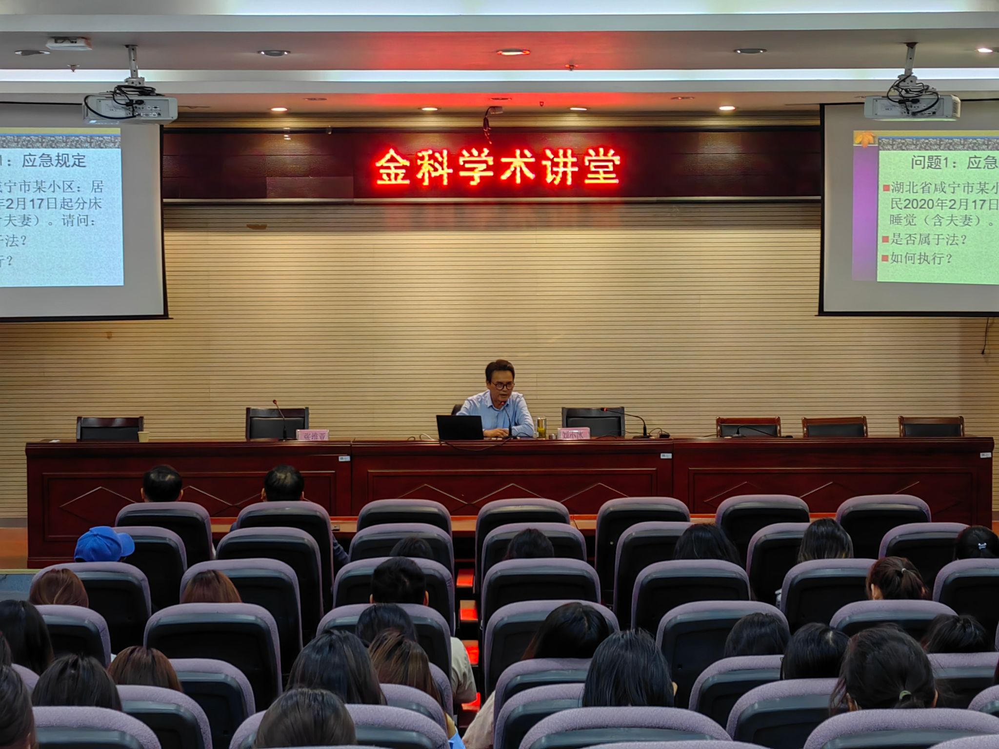刘小冰从应急规定、合同规制、罪刑法定三大问题导入对什么是“法”的思考,然后以立法权和立法体制为切入点,重点从法律、法规、规章三大方面详细论述了“法”的三种实证形式。在整个讲座过程当中刘小冰以案释法,深入浅出,又不乏风趣幽默,通过对《立法法》的实证分析,使听众深刻地理解了民主立法、科学立法、依法立法的核心精神和价值指向,加深了对党的二十大提出的“坚持全面依法治国,推进法治中国建设,完善以宪法为核心的中国特色社会主义法律体系”及以提高立法质量促进良法善治的认识。