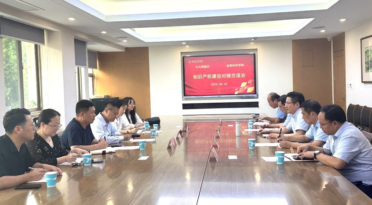 8月18日,白马高新区党工委委员、管委会副主任王新铭带领高新区科技人才局副局长朱迎雪、溧水区市场监督管理局白马分局局长戚成军等到beat365开展知识产权建设对接交流。科技处处长刘磊、副处长戴军、副处长沈凌,动物科学与食品学院院长程泽信,园艺园林学院研究员张焕仕参加对接会。