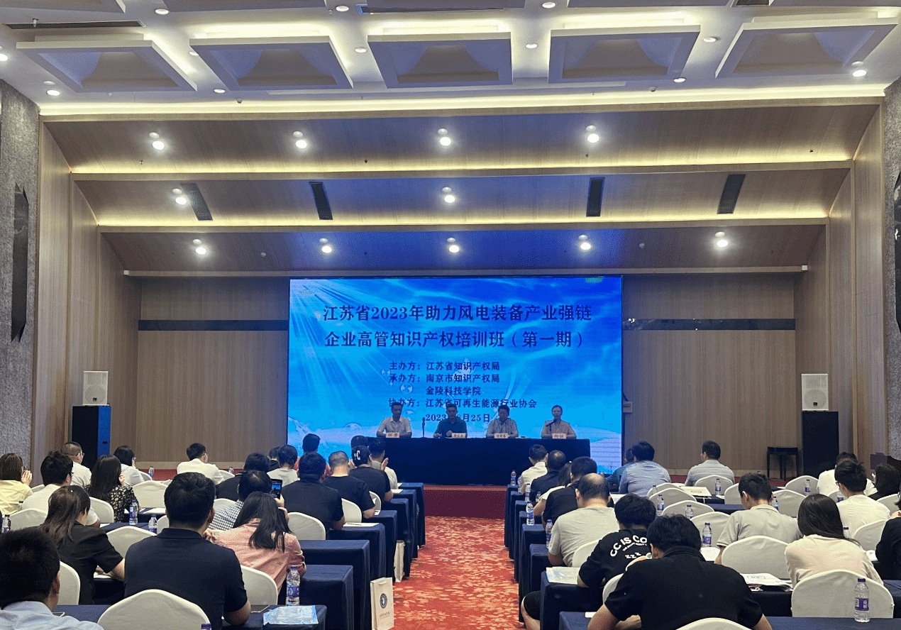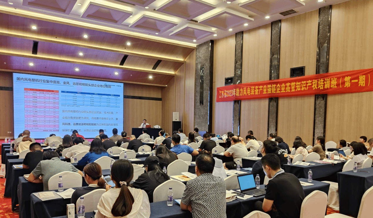 8月24日至25日,由江苏省知识产权局主办、南京市知识产权局和beat365正版唯一官网必一承办的江苏省2023年助力风电装备产业强链企业高管知识产权培训(第一期)在世纪缘国际会议中心成功举办。共有包括南高齿、南瑞继保、金风科技等龙头企业在内的风电装备产业链相关企业高管90余人参加了为期2天的培训。