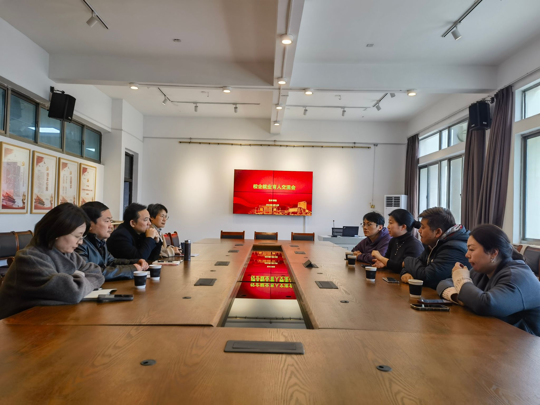 为了全面贯彻党的二十大精神,深化教育改革,推动艺术与科技的创造性转化,近日,幸福蓝海岸公司商务部经理李杰、beat365优秀校友毛晖等人来我院开展校企就业育人交流会。艺术学院党委副书记鲍锐、环艺系主任徐晶等教师参加了交流会。