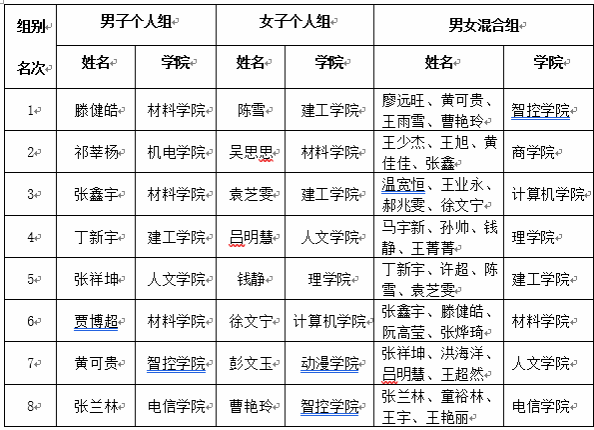 为全面贯彻落实中共中央办公厅、国务院办公厅印发《关于全面加强和改进新时代学校体育工作的意见》的文件精神,3月31日,beat365在江宁校区体育馆成功举办了beat365正版唯一官网必一第二十一届运动会软式飞镖比赛,全校18个学院共计129名学生参加了比赛。经过积分赛和附加赛两个阶段的激烈争夺,最终决出了男子个人前8名,女子个人前8名,男女混合前8名(具体名单附后)。