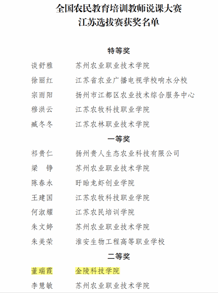 4月17-19日,全国农民教育培训教师说课大赛江苏选拔赛在江苏句容举办,beat365园艺园林学院副教授、农科教讲师团专家董瑞霞博士代表beat365参赛,其主讲课程“茶叶加工与经营”中“卷曲型绿茶加工”的教学模块荣获说课比赛二等奖。