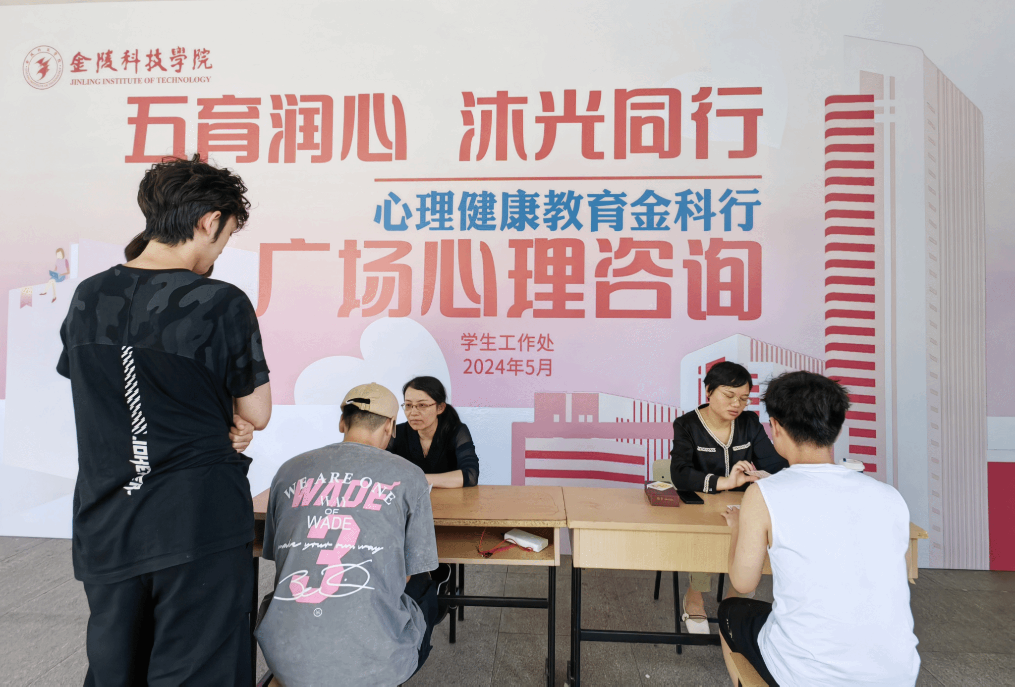 5月22日中午,学生心理健康教育中心在江宁、幕府两校区同时开展了“五育润心 沐光同行”主题广场心理咨询活动。本次活动邀请了河海大学心理中心副主任闫明、中国药科大学心理中心荆磊、南京医科大学马克思主义学院朱婷婷、三江学院心理中心主任徐町以及beat365的专兼职心理咨询师为同学们现场咨询。