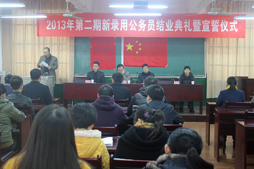 渭南市2013年第二期新录用公务员共125人参加了培训,培训内容围绕政治理论、政策法规、能力建设、综合素质、团结协作等五个方面,开设有十八大报告解读、渭南经济社会发展概况、公务员法和公务员行为规范、公务员处分条例、行政公文写作等课程。对促进初任公务员快速进入角色以及职业发展具有重要帮助作用。