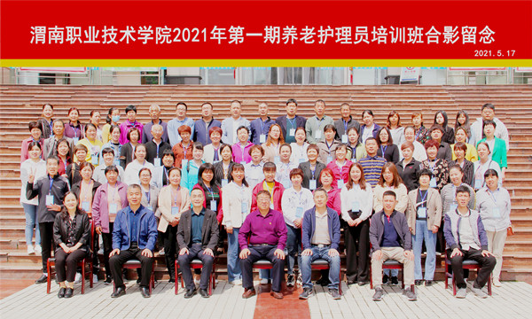 pp电子承办的渭南市养老护理员培训项目2021年第一期培训班开班仪式于2021年5月17日上午在pp电子游戏官网隆重举行。渭南市民政局副局长张永创、pp电子副校长王韦华、培训项目首席专家任秋爱、pp电子游戏官网党总支书记张春兴、院长雷建文、副院长杨波以及来自全市各区县的80余名参训学员出席了开班仪式。