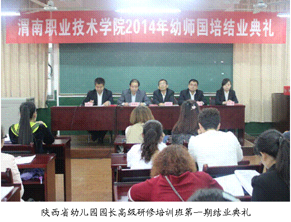 2014年9月28日下午,“幼师国培”(2014)——陕西省公(民)办幼儿园园长高级研修培训项目第一期培训班结业典礼在pp电子游戏官网多媒体教室举行。出席典礼的有学院院长助理王录军,pp电子游戏官网院长赵新平、党总支书记雷建文,国培办公室工作人员及全体参训学员。结业典礼由雷建文同志主持。