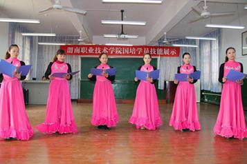 结业典礼前,举行了学员技能展示汇报演出。有三句半《国培赞》、舞蹈《西域风情》、诗朗诵《我是幼儿教师》等,汇报演出在高潮迭起的歌伴舞《欢聚一堂》中结束。节目内容丰富,异彩纷呈。学员们的歌声虽然没有歌唱家的洪亮,但真正唱出了学员们对学院和国培的心声;虽然没有舞蹈家的舞姿优美,但显得是那样的淳朴和厚重。(周文琦)