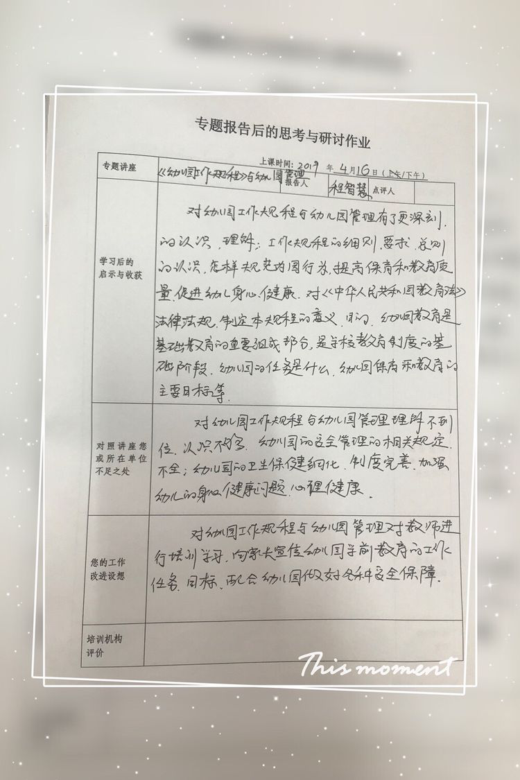 下午有幸聆听了西安浐灞幼儿园程智慧园长的关于《幼儿园工作规程》与幼儿园管理方面的知识讲座。