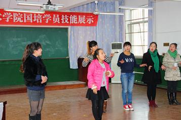 结业典礼前,举行了学员技能展示汇报演出。节目内容丰富,多彩纷呈。有小品《幼师招聘会》、舞蹈《中国范》、手语操《在路上》、诗朗诵《感悟国培》等,汇报演出在高潮迭起的歌伴舞《欢聚一堂》中结束。(周文琦)