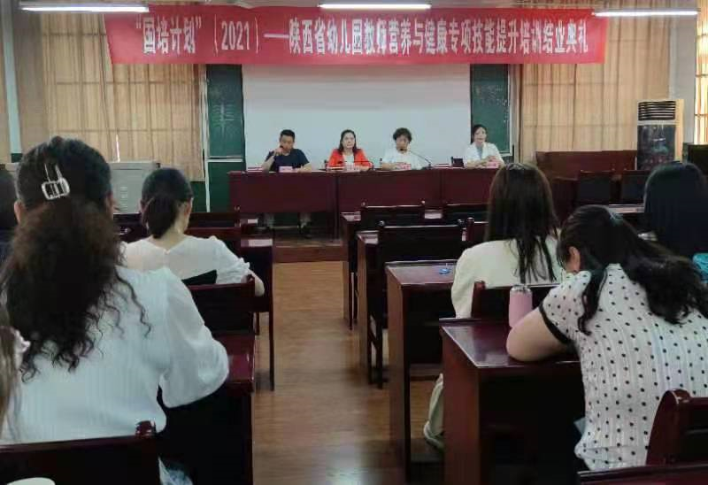 5月29日上午,pp电子pp电子游戏官网举行“国培计划”——陕西省幼儿园教师营养与健康专项技能提升培训项目结业典礼。pp电子游戏官网院长惠斌贤作培训工作总结,党总支书记马淑红宣布优秀班干部和优秀学员的表彰决定,孟杰等5名学员获得“国培优秀班干部”称号,尹文雅等10名学员获得“国培优秀学员”称号,来自咸阳市的培训学员李敏代表全体学员作了精彩发言。