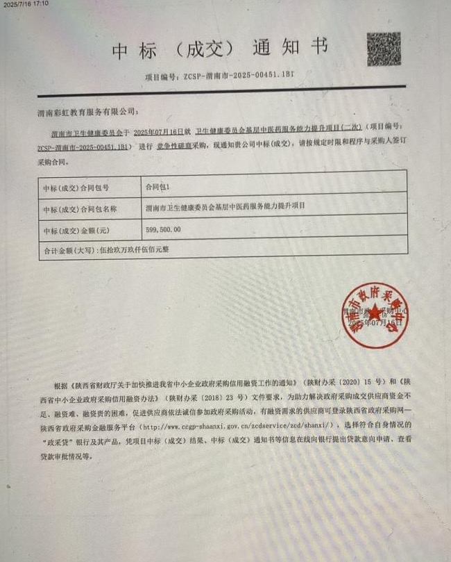 7月16日,渭南市政府采购中心发布了2025年渭南市卫生健康委员会基层中医药服务能力提升项目中标(成交)结果公告,pp电子再次成功中标。