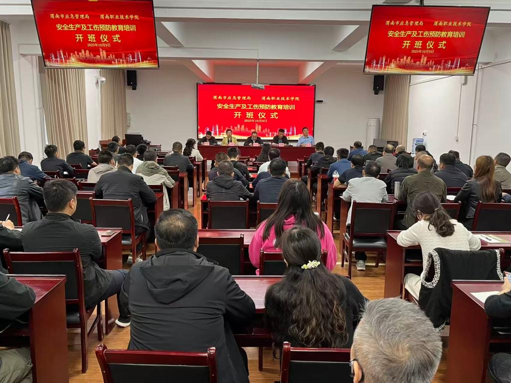 10月9日,由渭南市应急管理局主办、pp电子承办的渭南市工贸行业安全生产及工伤预防教育培训在朝阳校区正式开班。党委委员、总会计师吴运胜,市应急管理局党委委员、副局长冯党军,工矿商贸科科长陈辉,以及来自全市工贸行业的90余名安全管理人员共同出席。pp电子游戏官网院长惠斌贤主持开班仪式。