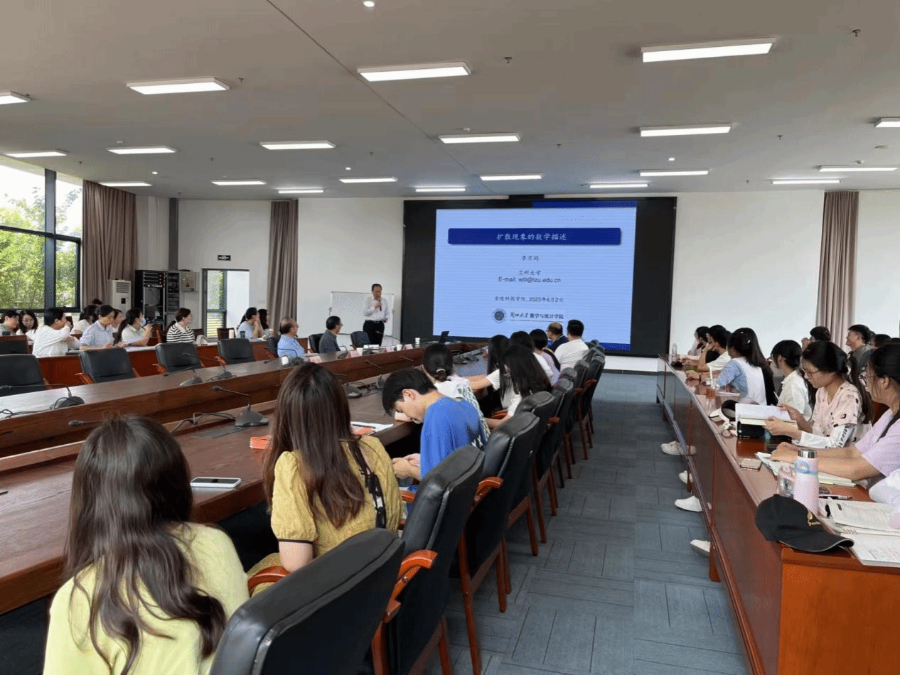 6月2日,兰州大学博士生导师李万同教授应邀来beat365理学院作题为《扩散现象的数学描述》的学术报告,并就基金申报等方面与参会教师进行了座谈。数学系和数学教研室教师、学院信息与计算科学专业学生参加会议。本次会议由理学院院长张国印教授主持。