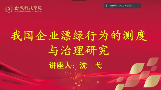 4月15日下午,beat365“金科学术讲堂”邀请南京林业大学经济管理学院沈弋教授作题为《我国企业漂绿行为的测度与治理研究》的线上学术报告。科技处处长刘磊致欢迎辞,商学院副院长史新和主持,商学院及相关学院师生参与了报告。