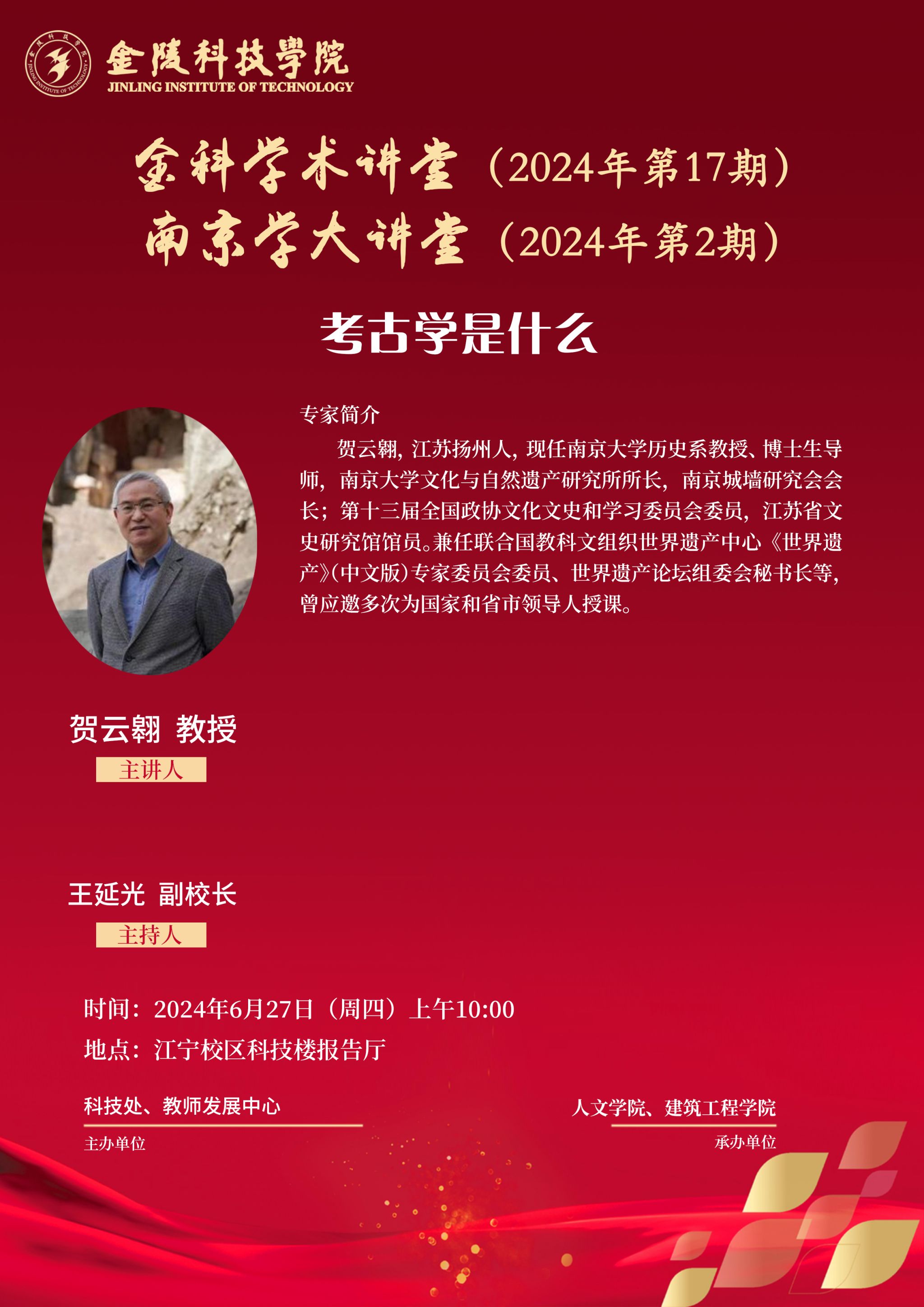 关于举办线下“金科学术讲堂&南京学大讲堂——考古学是什么”学术报告的通知